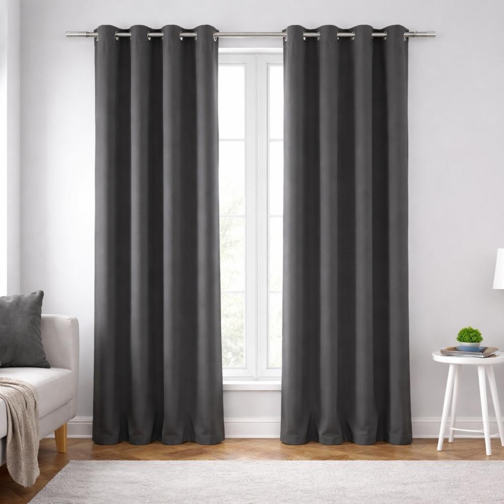 Charcoal Grey Blackout Curtain with Metal Eyelets